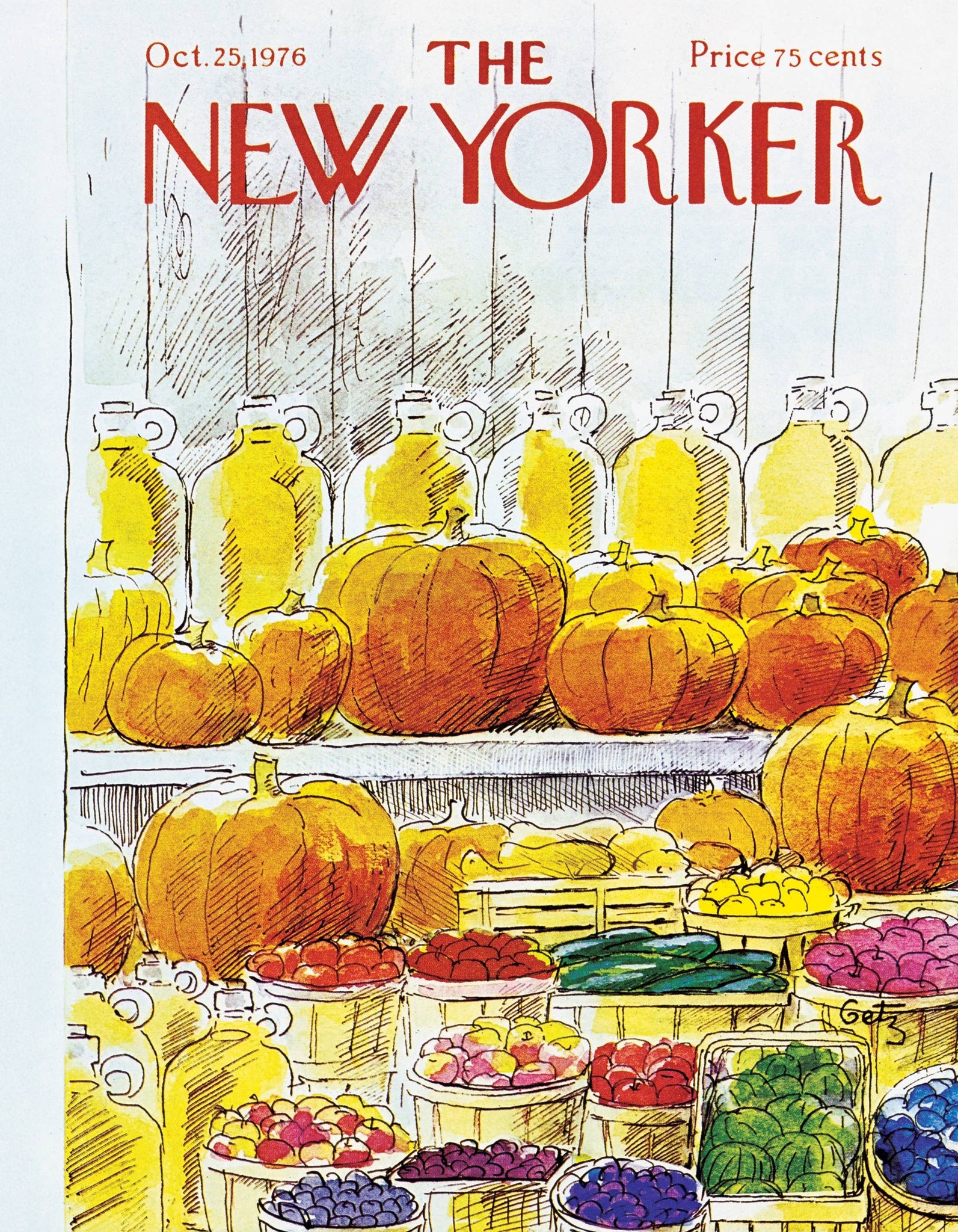 Celebrate the bounty of autumn with the Farm Stand 100-piece mini puzzle, featuring the charming October 25, 1976 watercolor cover of The New Yorker magazine. This cozy fall scene showcases all your seasonal favorites—plump pumpkins, colorful gourds, fresh fruits and vegetables, and bottles of golden maple syrup—beautifully arranged at a rustic farm stand. A perfect puzzle for autumn lovers, farmers’ market fans, and collectors of nostalgic Americana. Compact, giftable, and rich with fall charm.