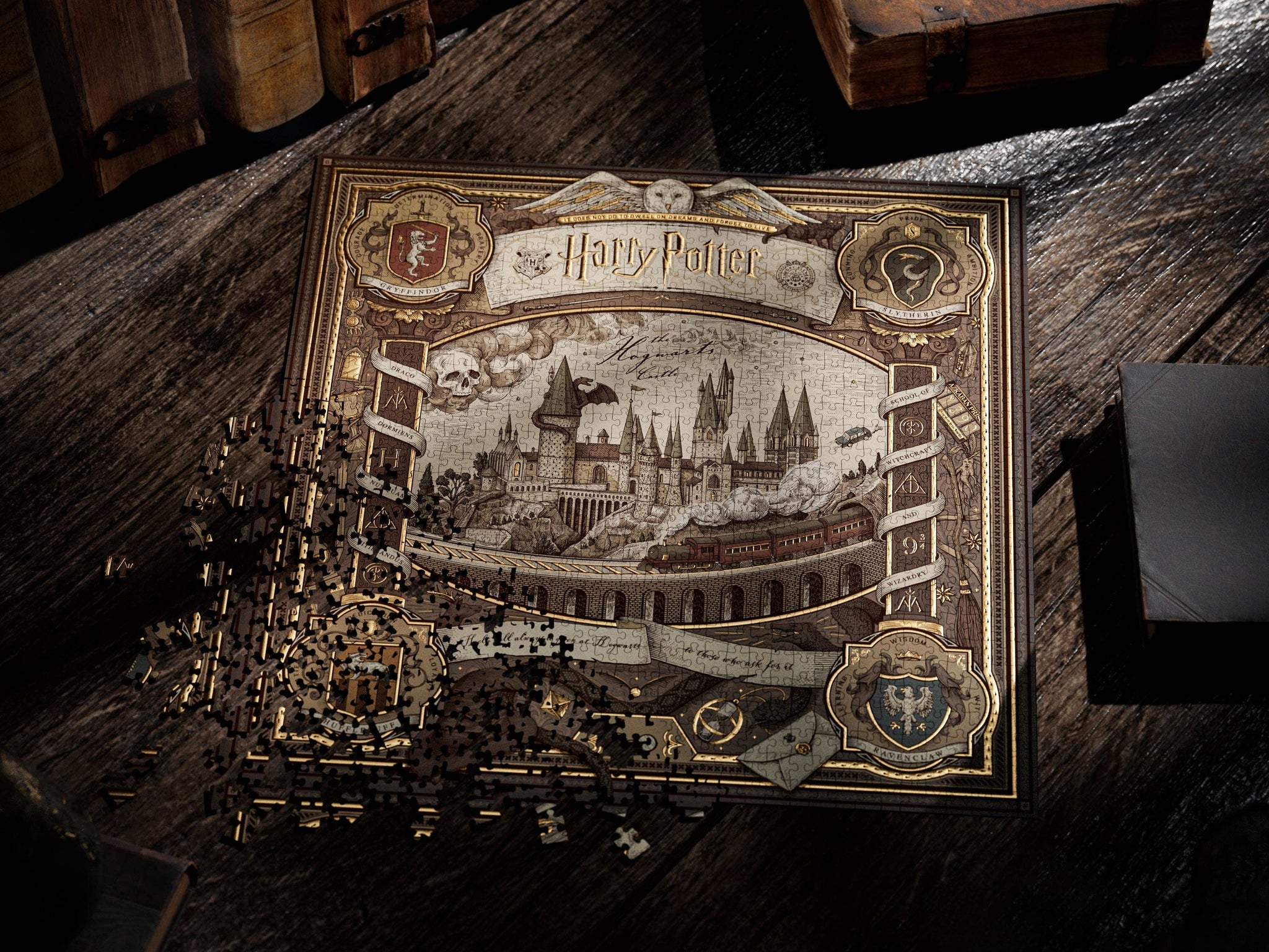 Your journey to Hogwarts™ begins with this premium jigsaw puzzle, featuring a multi-dimensional twist!