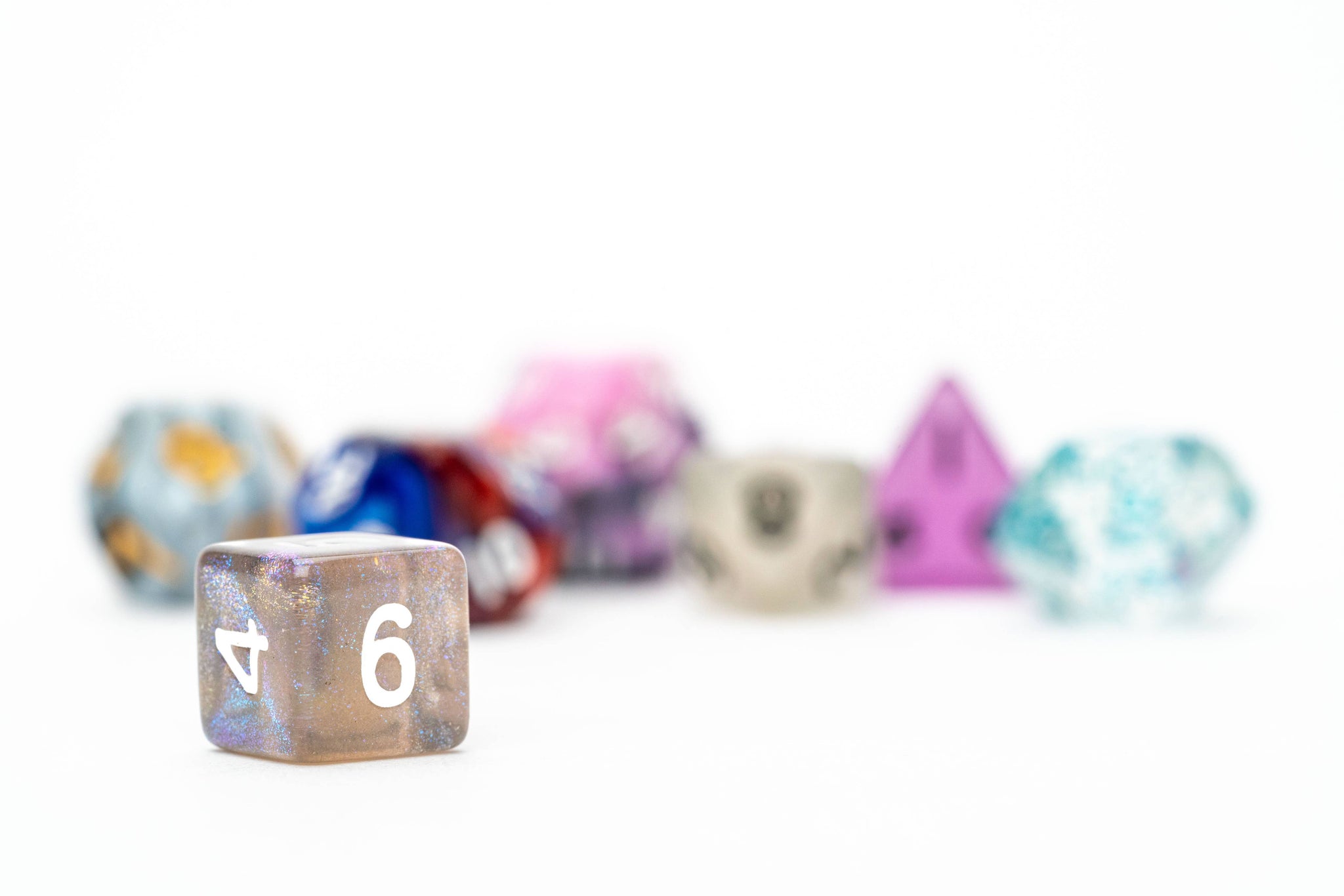 Everyone loves a blind pack! Now you can unwrap and adopt a 2 full sets of mini dice and bring them home. These dice are one-of-a-kind including a mix of colors and effects. Everyone loves a mini die and now you can get 14!