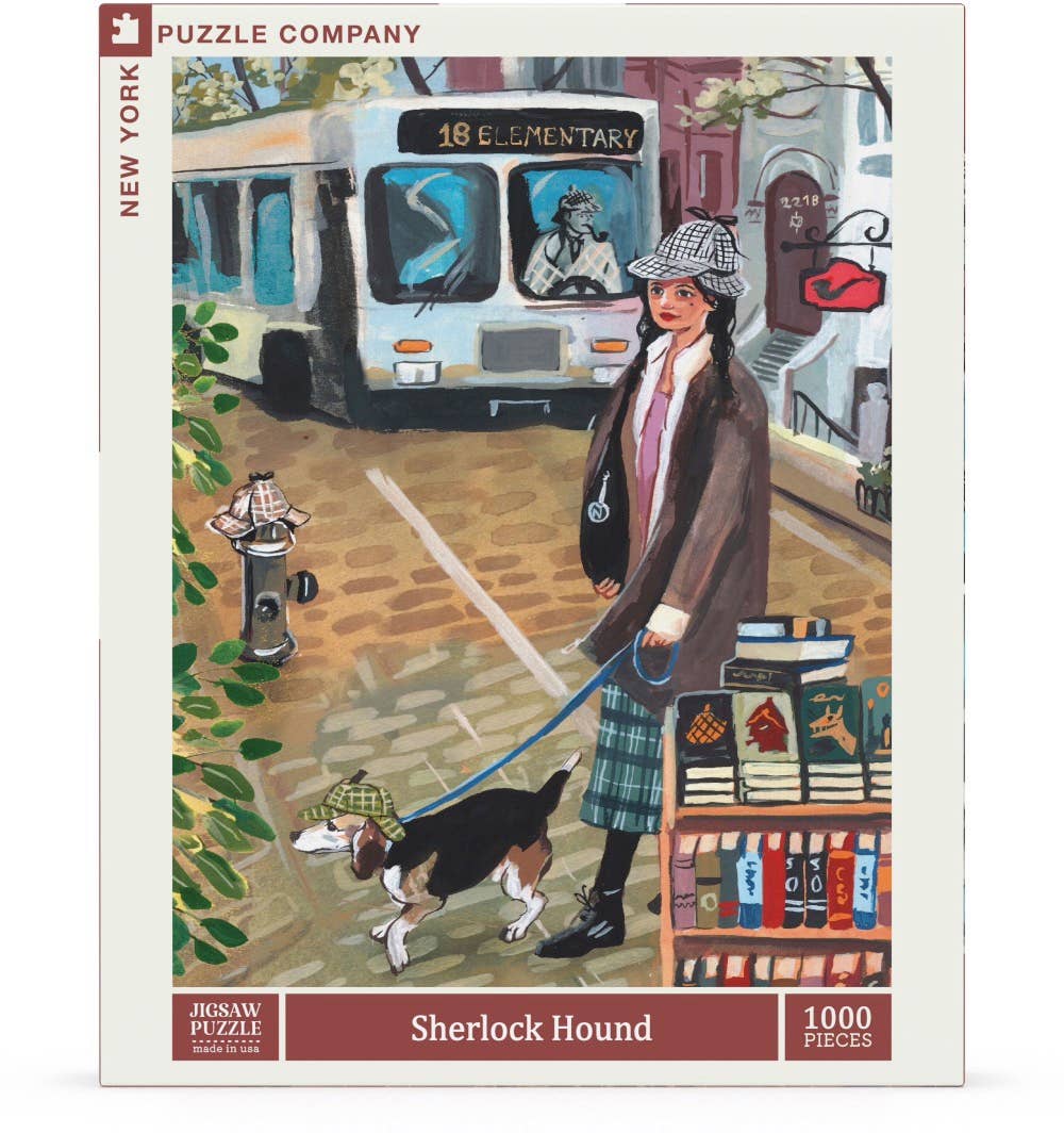 Step into the world of intrigue with the Sherlock Hound 1000 Piece Jigsaw Puzzle, beautifully illustrated by renowned artist Jenny Kroik. This captivating puzzle combines charm, mystery, and the joy of discovery. The artwork features a young woman strolling with her loyal beagle, both dressed in classic Sherlock Holmes-style caps. The scene is bursting with hidden clues and clever details, from pipes to a display of intriguing books at a sidewalk shop. Look closely—there are even more caps and subtle hints waiting to be uncovered!